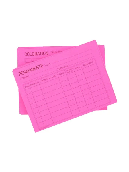 50 fiches reversibles roses. Un cÎté coloration et un cÎté permanente.
