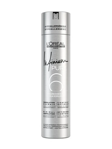 Infinium Pure est la 1ère laque professionnelle sans parfum et sans masqueur d’odeurs. Sa formule hypoallergénique contient 6 ingrédients maximum pour un confort d’utilisation optimal tout en garantissant une performance professionnelle. La laque Infinium Pure apporte une brillance incomparable à la chevelure tout en offrant un toucher naturel. Sa diffusion ultra fine permet une fixation flexible pour créer et retravailler les looks les plus tendances. Confort d’utilisation, diffusion ultra fine, toucher naturel et brillance ultime.